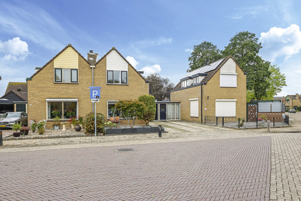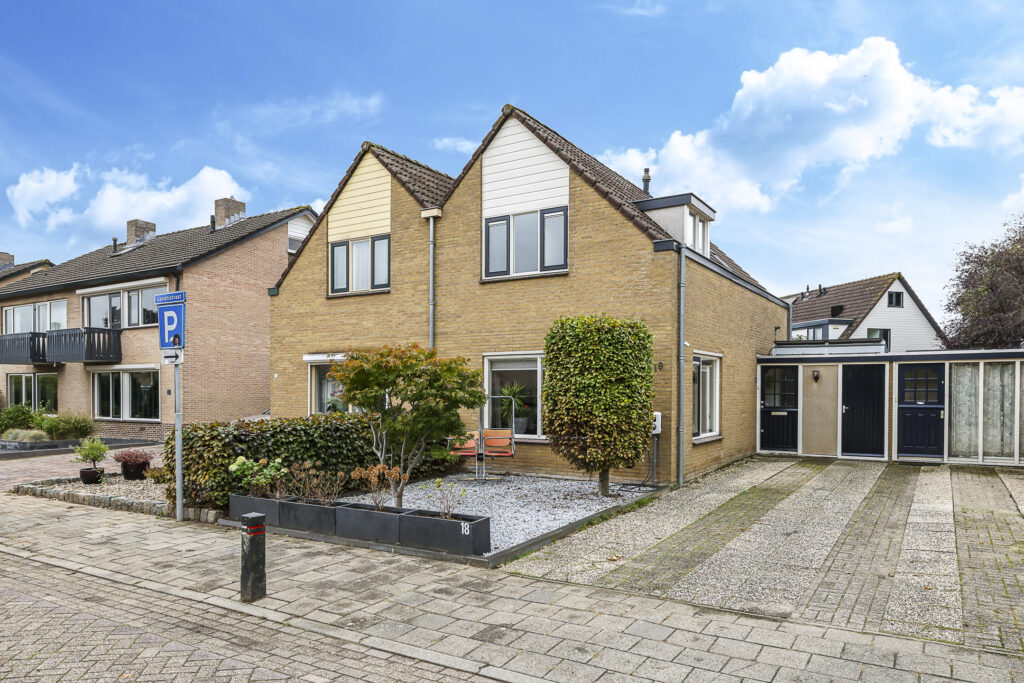 Gelegen op een aantrekkelijk perceel grond van 222m2 groot, is de woning gebouwd met een eigen zadeldak waardoor het half-vrijstaand aandoet. De woning heeft geen doorsnee uitstraling en dat speelse karakter vinden we ook terug in de woning. De woning is geschakeld met de garage van de naastgelegen buurwoning. Ook deze woning had voorheen een eigen garage, maar die is omgebouwd tot berging en bijkeuken/wasruimte. Tegenwoordig gebeurt het nog maar zelden dat een auto in de garage wordt geparkeerd. Wellicht dat de diepe oprit met plaats voor 2 auto’s ook al voldoende is. Doordat de garage is omgebouwd, is er meer leefruimte ontstaan en de bijkeuken zal je ook zeker als erg praktisch ervaren. Daarentegen kun je nog steeds fietsen in de berging kwijt.